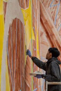 今年は城の「建築構造(テクトニクス)」に注目し、アーティストの川田知志さんがフレスコ画を移し替える際に用いる技法を使って、独自の解釈で本丸御殿を写し取る大規模な作品を展示します。このプロジェクトを通して、よく知っているはずの名古屋城が、その都度新しい顔を見せてくれます。