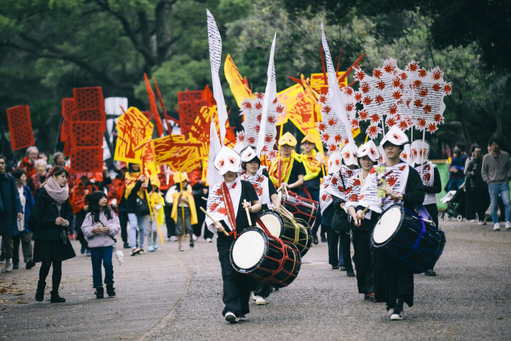 パレードに参加する東海太鼓センターの皆さんとは、これまでに素晴らしい関係を築いてきました。昨年初めて行った太鼓ワークショップは大成功で、今年はさらに充実したものになると期待しています。彼らは新しいことに挑戦し、既成概念にとらわれない柔軟さと情熱を持ち合わせた、理想的なコラボレーションパートナーです。今年は伝統的な響きに加えて新しい楽器や要素を取り入れ、より実験的な表現を試みます。即興性や自由な発想を尊重しながら、「未来」をテーマに独自の音響を創り出すことを目指しています。