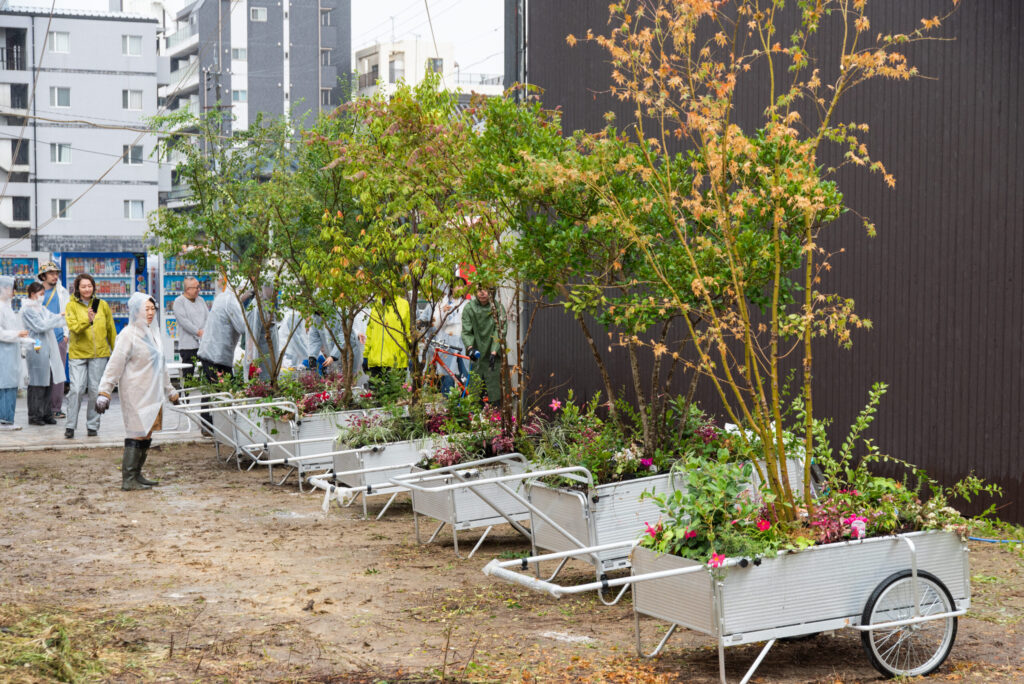 もちろん、実際の庭園や公園を、一気に水平な意思疎通の場として開くというのも単純・短絡で、場合によってはディスコミュニケーションの種になりかねない。だからこそ、既存の所有・管理のルールをいったん外して考える試みとして、「旅する木陰」による庭のキャラヴァン/モバイル化は非常に有効であったと思う。さらに言えば、「旅する木陰」が通ることで、町の一角が次々と庭化していくような場の雰囲気の変化も忘れられない。ちょうど神社の山車や神輿の移動が都市を聖なる空間に変えるように、行き交う「旅する木陰」が街に庭をふりまいていたのだ。