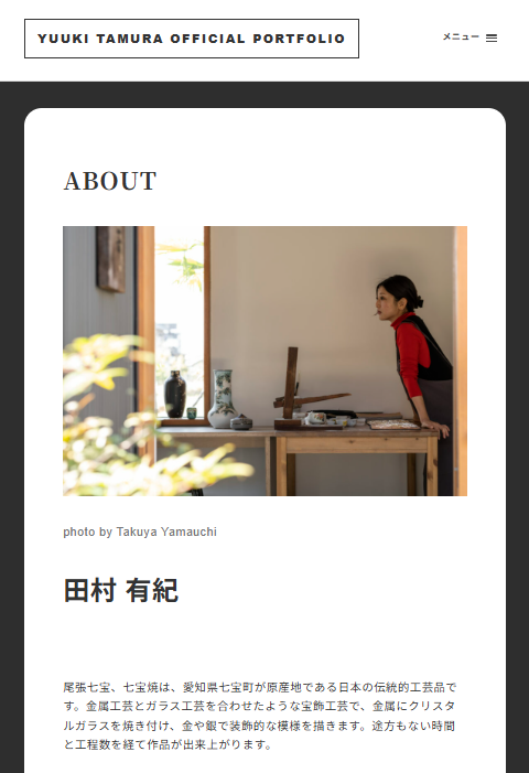 「尾張七宝・七宝焼」の窯元、田村七宝工芸の五代目としての作品や制作活動を視覚化するためにポートフォリオサイトを制作し、多言語対応を行う。