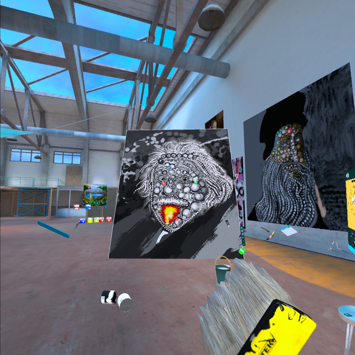 これまで一貫して、ゲーム的世界観、仮想、妄想、自身の内なる物語をテーマに絵画や立体などを制作してきた。コロナ禍を契機に、VR (仮想現実)のスタジオでも制作を開始。主宰する「タネリスタジオ」とVRを行き来しながら、現実と仮想の融合や、実存について模索している。
